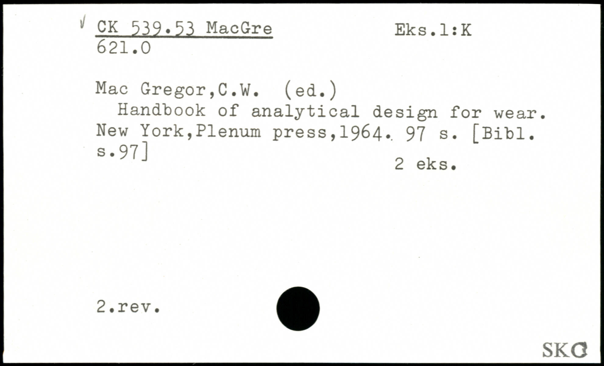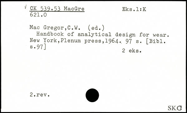 Mac Gregor,C.W. (ed.) Handbook of analytical design for wear.