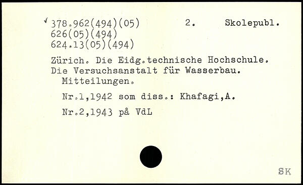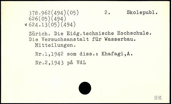 Zürich. Die Eidg.technische Hochschule. Die Versuchsanstalt für Wasserbau. 1 Mitteilungen, Nr0l
