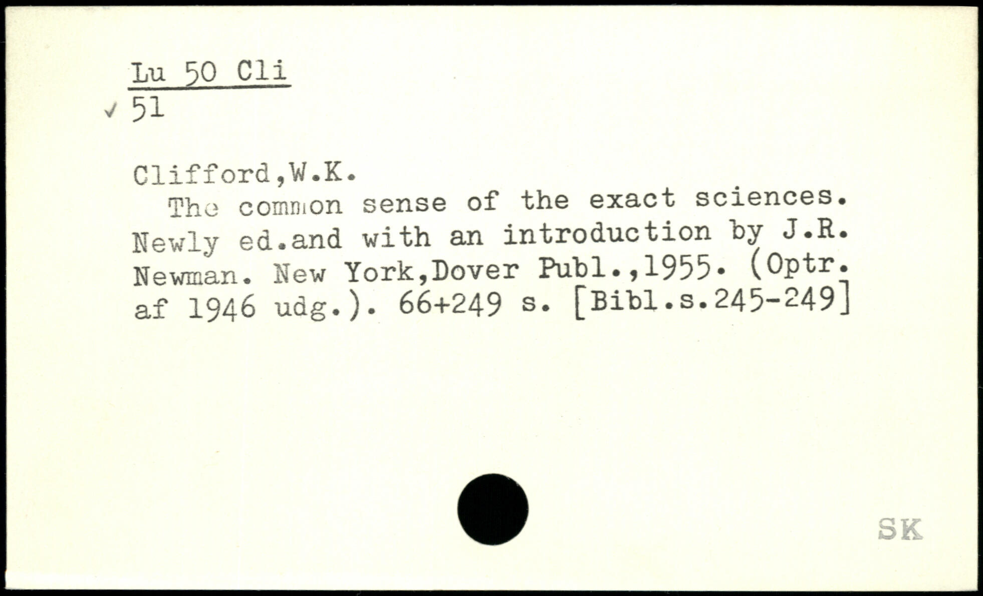 Tho common sense of the exact sciences. Newly ed.and with an introduction hy J.R. Newman.