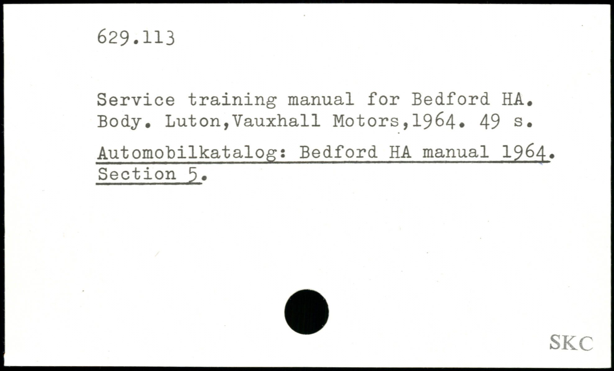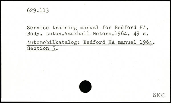 Service training manual for Bedford HA. Body.