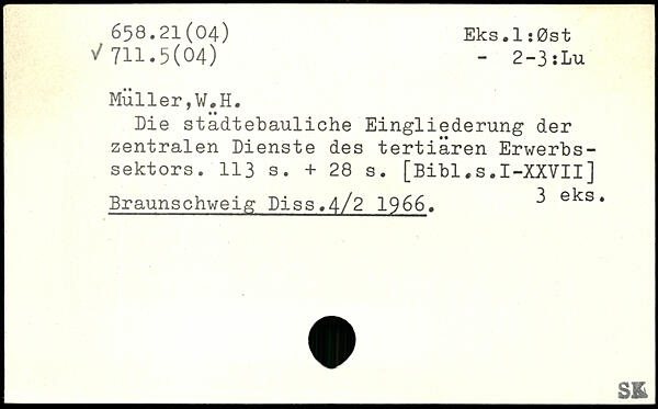 Die städtebauliche Eingliederung der zentralen Dienste des tertiären Erwerbssektors.