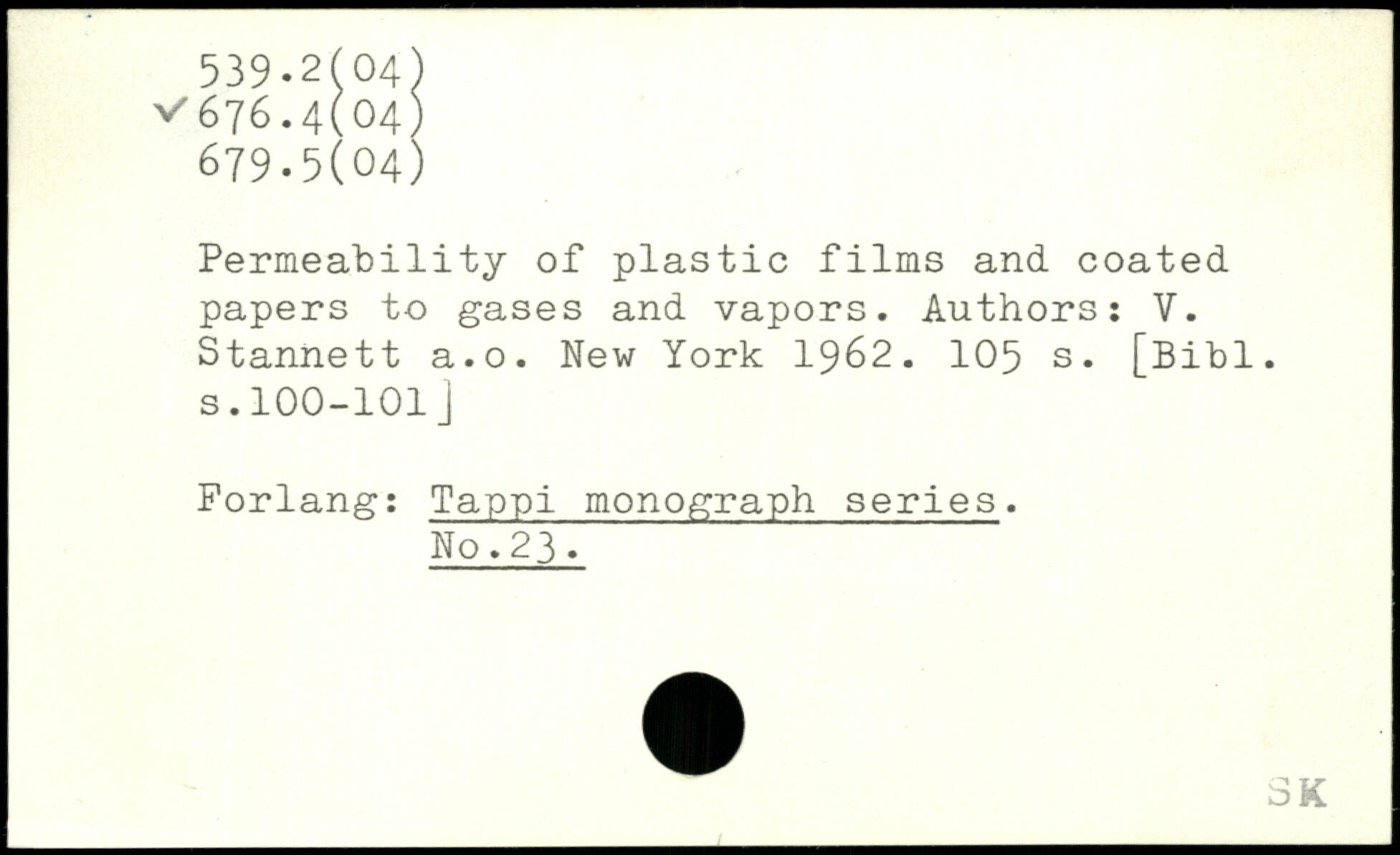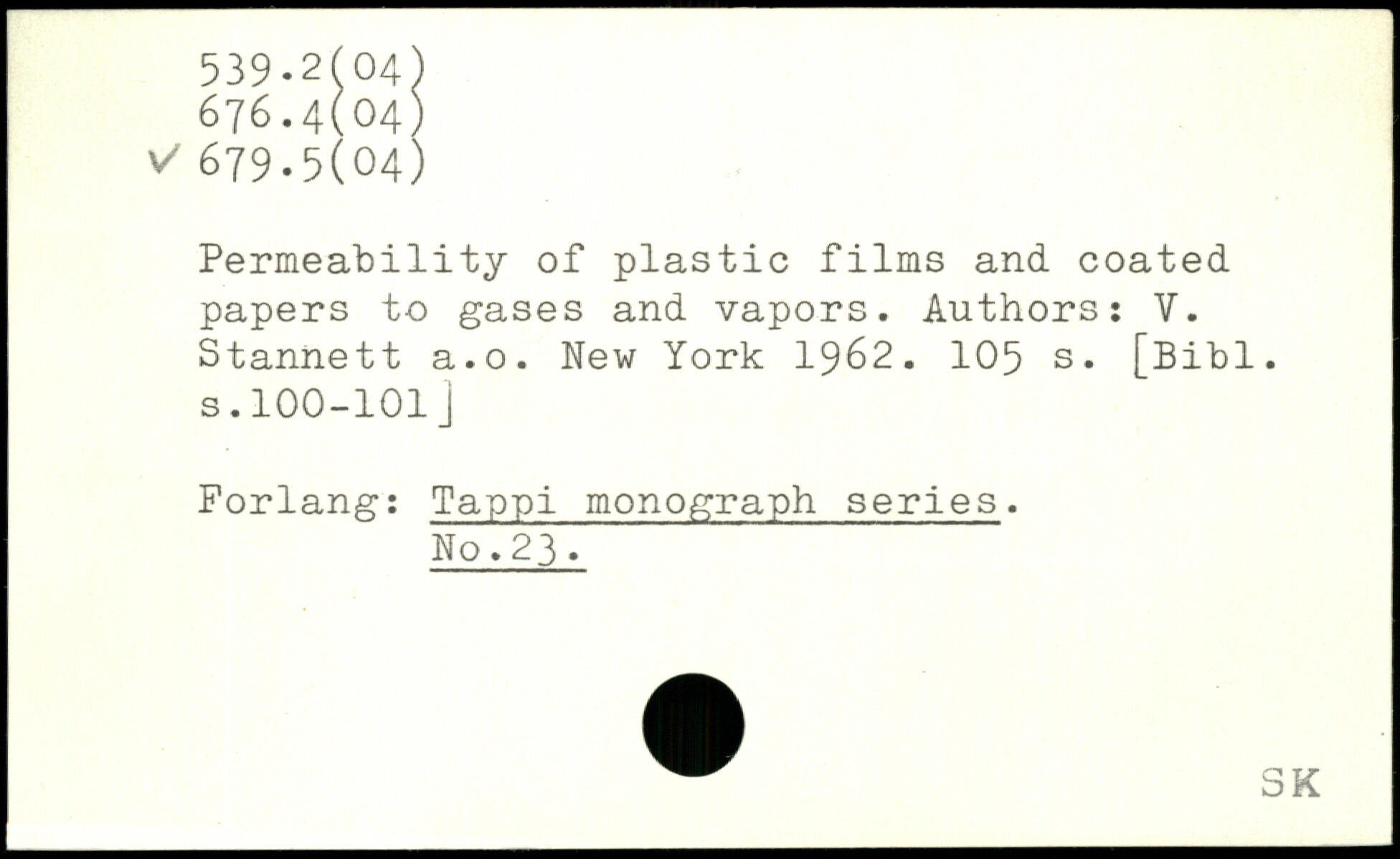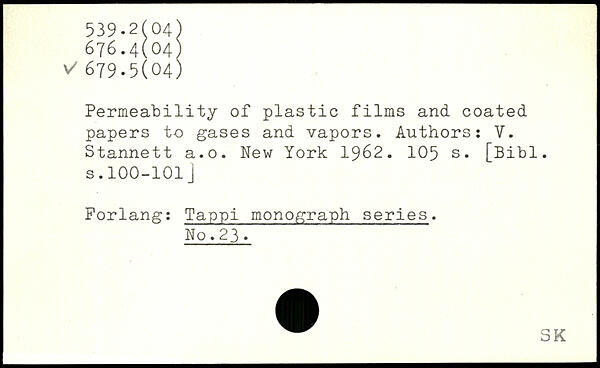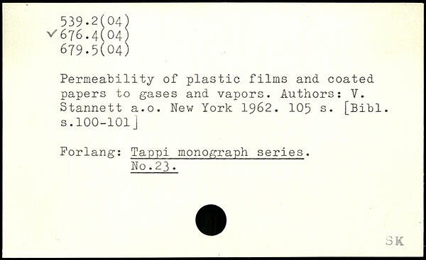 Permeability of plastic films and coated papers to gases and vapors. Authors: V. Stannett a.o.