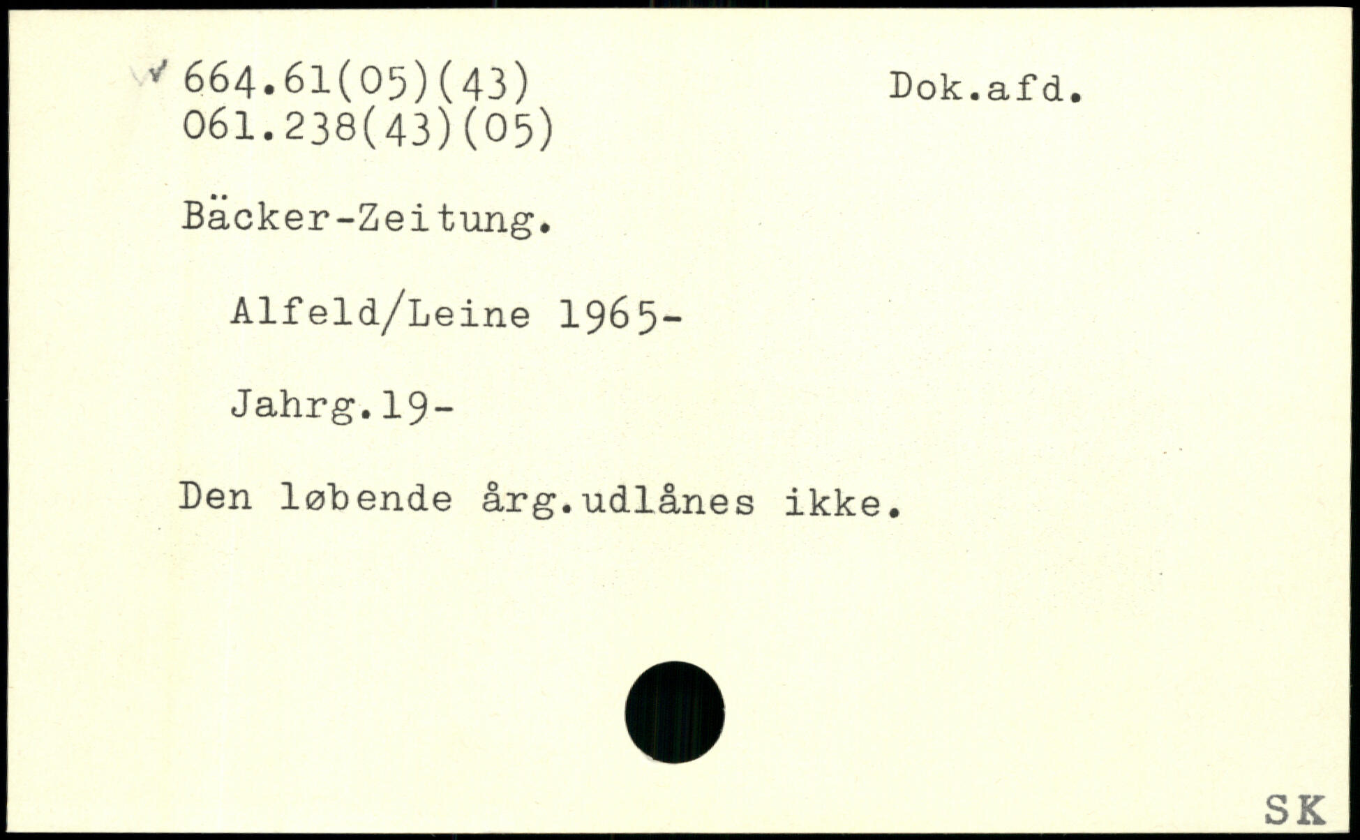 Backer-Zei tung. Alfeld/Leine 1965-Jahrg.19- Den løbende årg.udlånes ikke.