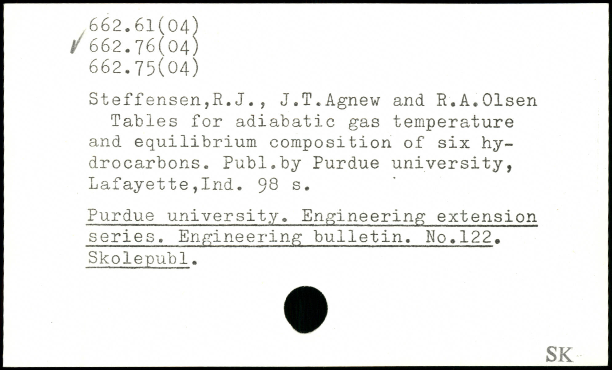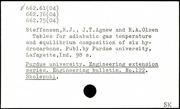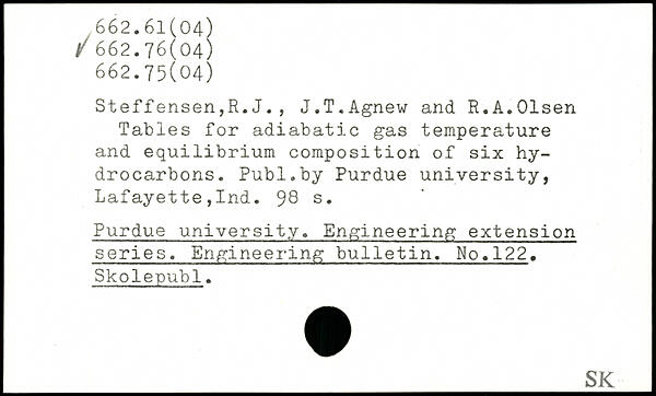Steffensen,H.J., J.T.Agnew and R.A.Olsen Tables for adiabatic gas temperature and equilibrium composition of six hydrocarbons.