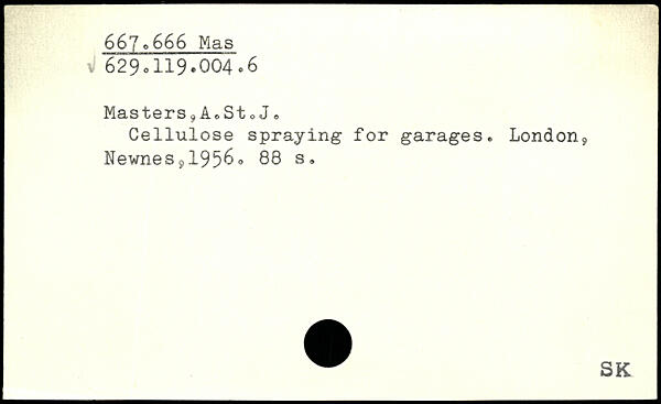 Masters.A.StoJ. Cellulose spraying for garages. London9 Newnes91956.