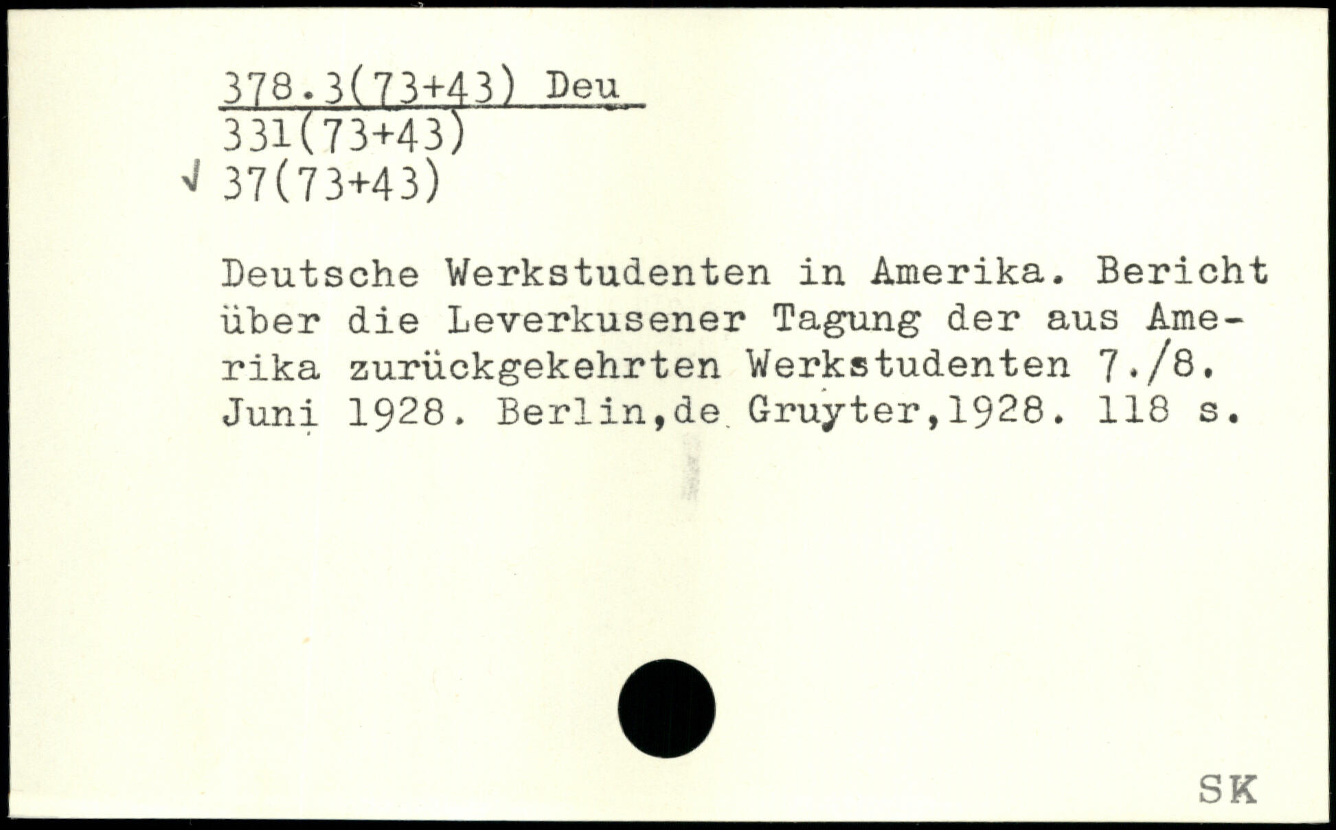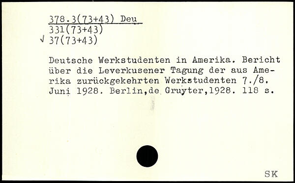 Deutsche Werkstudenten in Amerika. Bericht über die Leverkusener Tagung der aus Amerika zuriickgekehrten Werkstudenten 7./Q, Juni 1928. Berlin,de. Gruyter,1928.