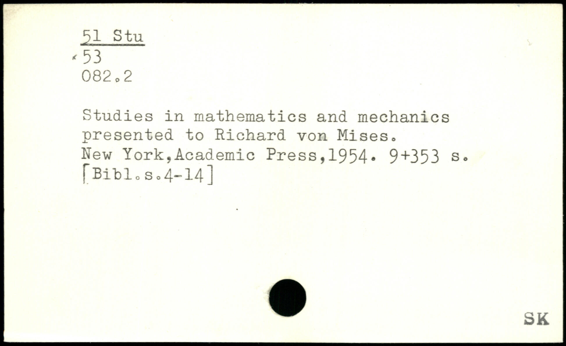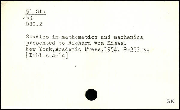Studies in mathematics and mechanics presented to Richard von Mises.