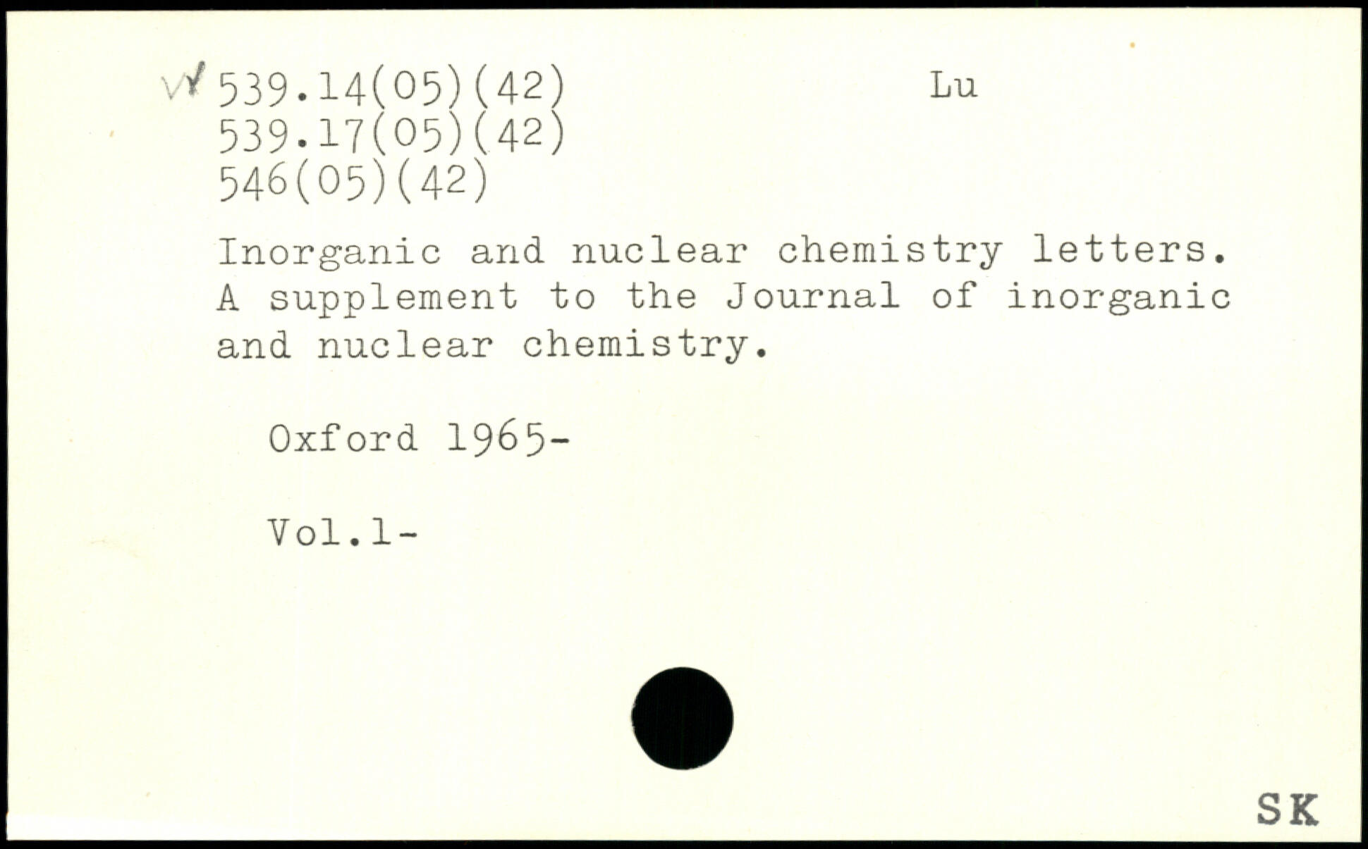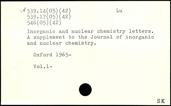 Inorganic and nuclear chemistry letters. A supplement to the Journal of inorganic and nuclear chemistry.