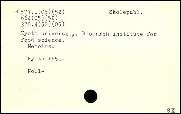 Kyoto university. Research institute for food science. Memoirs. Kyoto 1951- No.1-