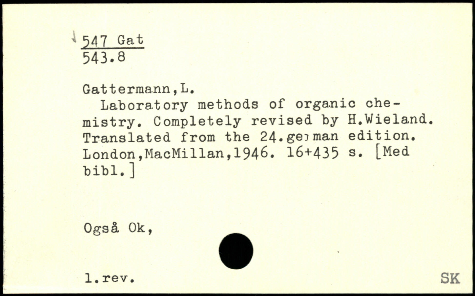 Laboratory methods of organic chemistry. Completely revised by H.Wieland. Translated from the 24-. gel man edition.