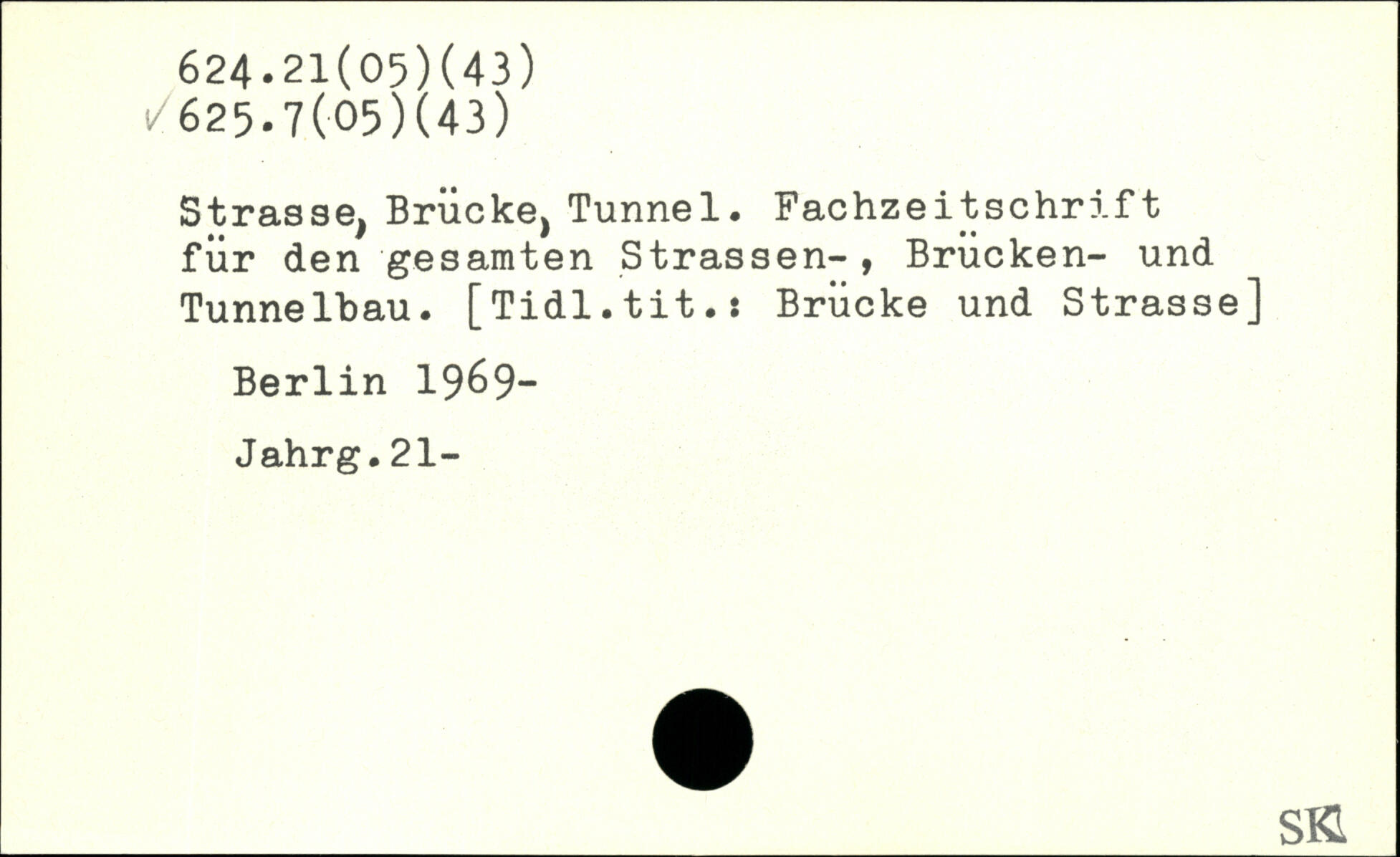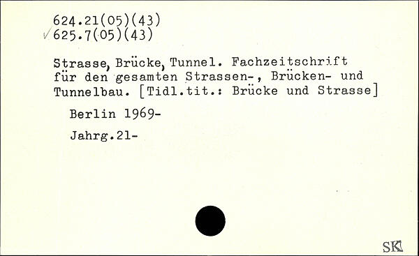 Strasse, Brücke, Tunnel. Fachzeitschrift für den gesamten Strassen-, Brucken- und Tunnelbau. [Tidl.tit.: Brücke und Strasse] Berlin 19&9- Jahrg.21-