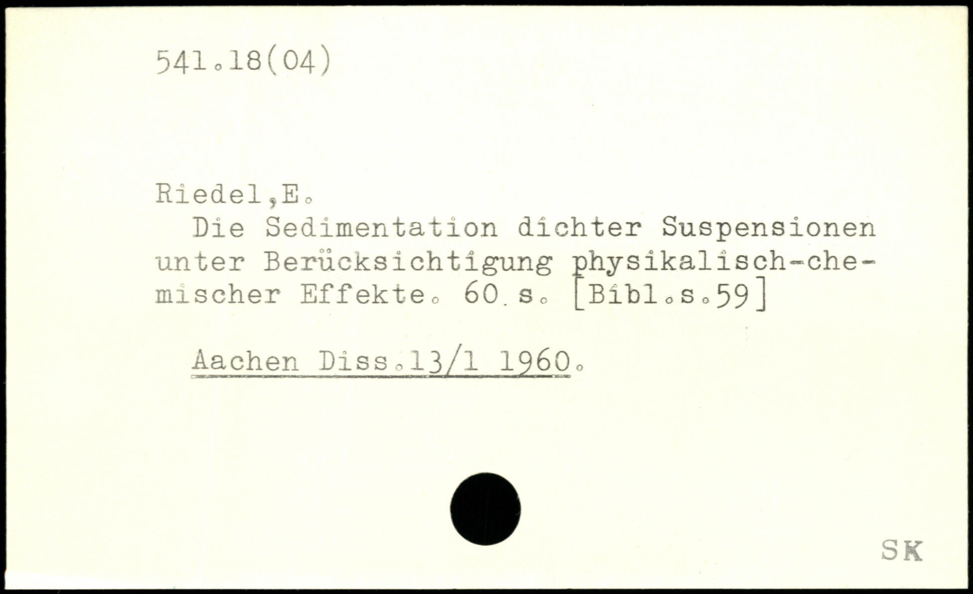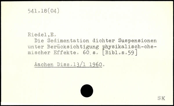Die Sedimentation dichter Suspensionen unter Berücksichtigung physikalisch-chemischer Effekte,, 60.s, _BibloSo59] Aachen Dissol3/l 19600