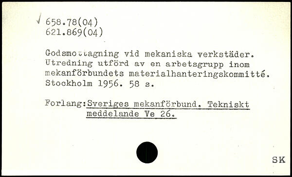Godsmottagning vid mekaniska verkstäder. Utredning utförd av en arbetsgrupp inom mekanförbundets materialhanteringskommitté.