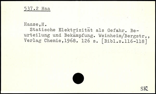 Statische Elektrizität als Gefahr. Beurteilung und Bekämpfung.