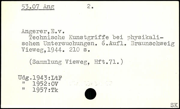 Technische Kunstgriffe hei physikalischen Untersuchungen. o.Aufl. Braunschweig Vieweg,1944.