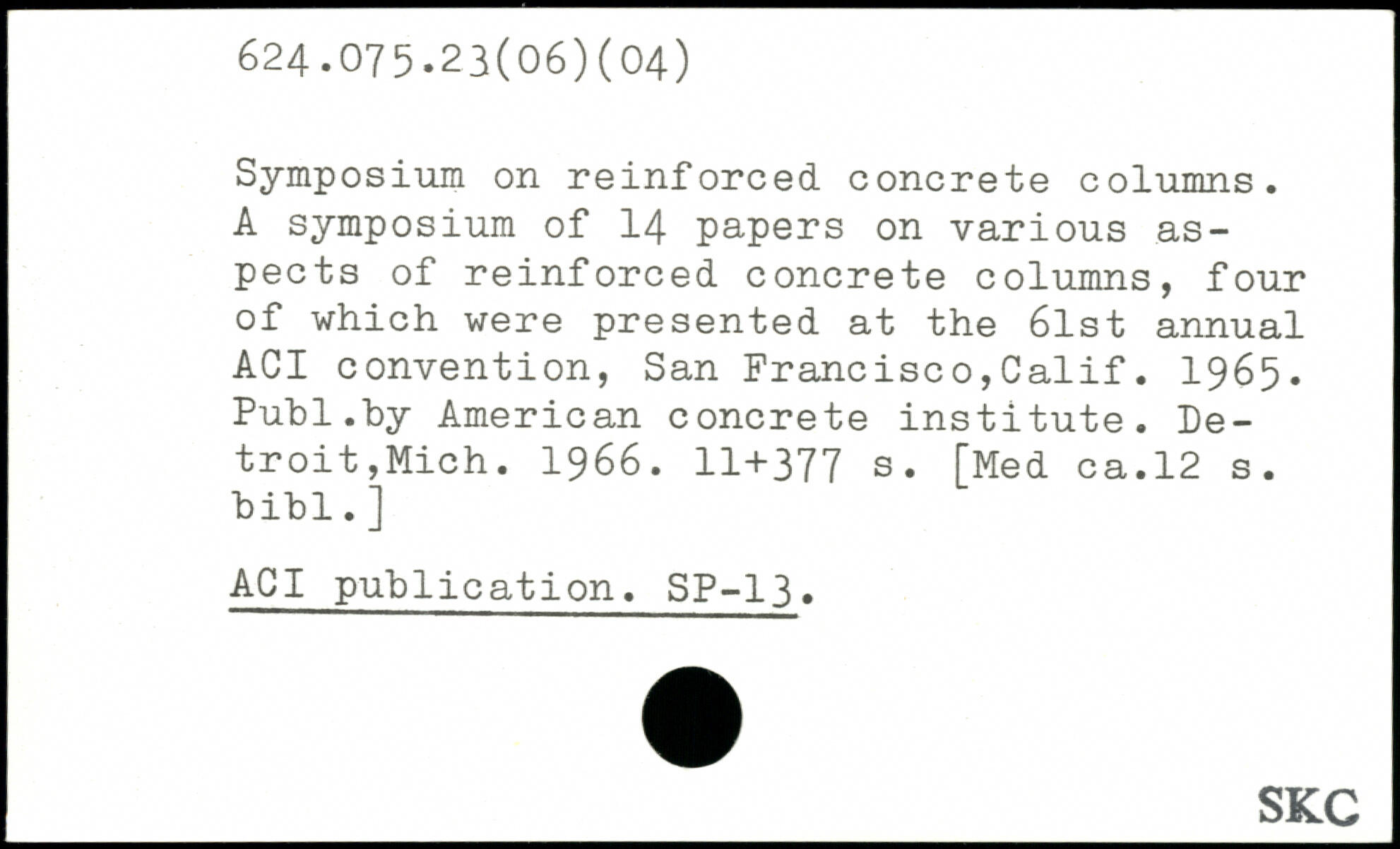 Symposium on reinforced concrete columns. A symposium of 14 papers on various aspects of reinforced concrete columns, four of which were presented at the 6lst annual ACI convention, San Francisco,Calif. 1965.