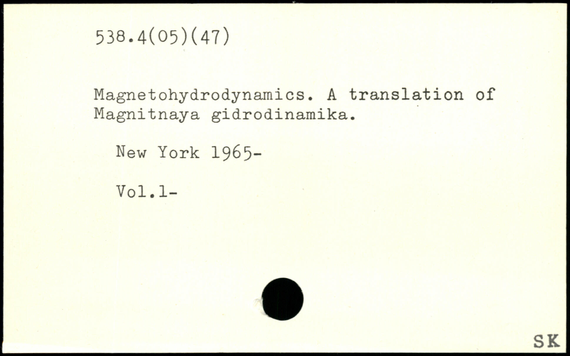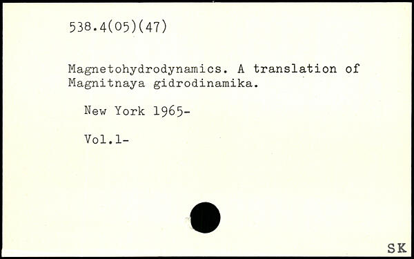 Magnetohydrodynamics. A translation of Magnitnaya gidrodinamika.