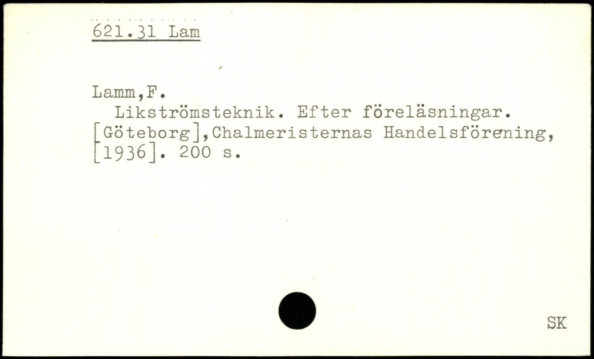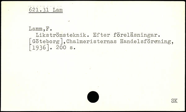 Likströmsteknik. Efter föreläsningar. Göteborg],Chalmeristernas Handelsförening, [1936].