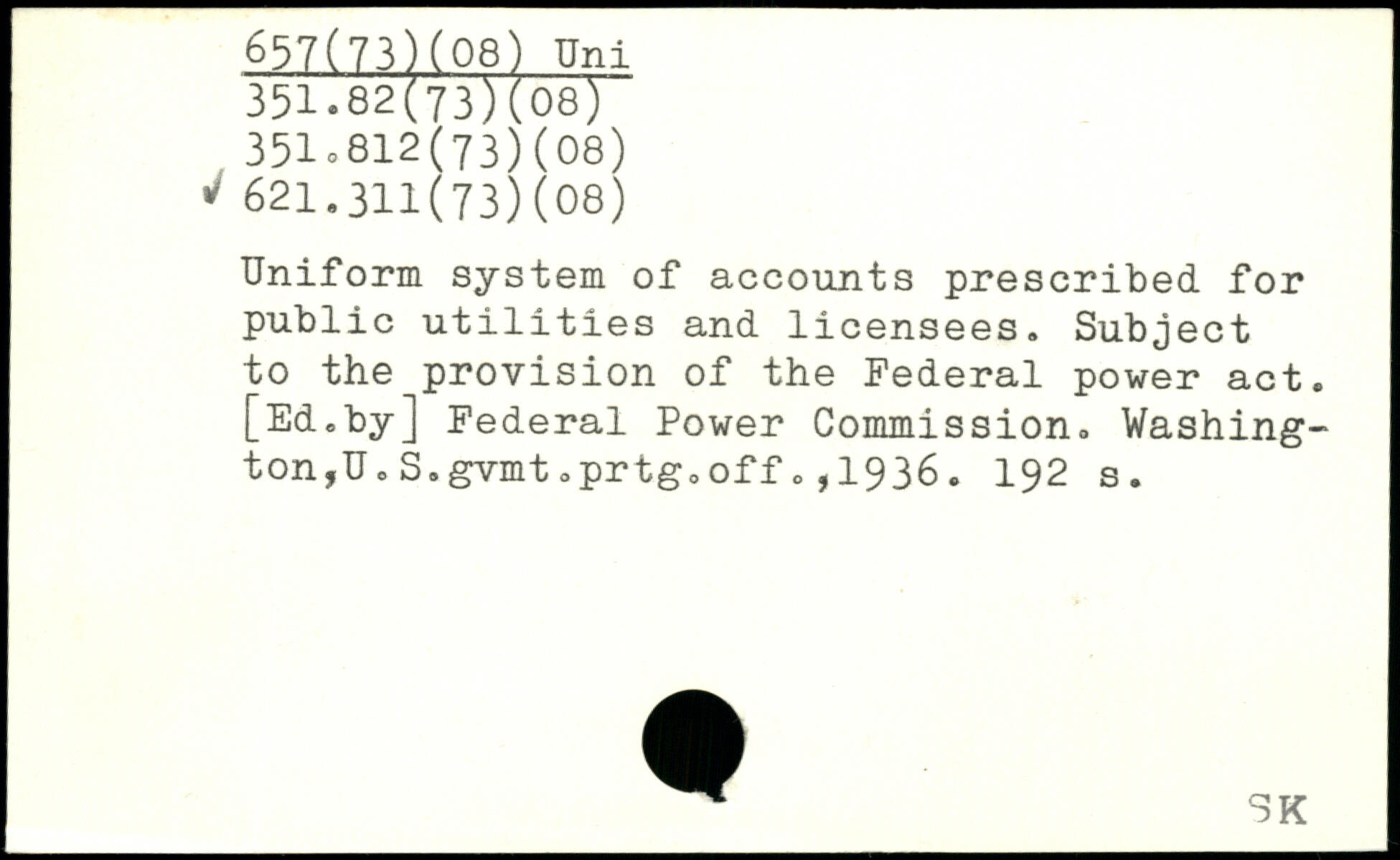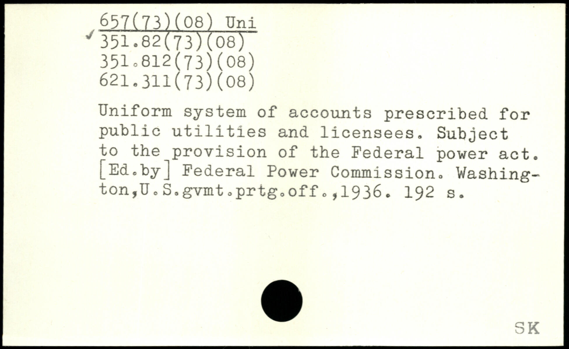 Uniform system of accounts prescribed for public utilities and licensees. Subject to the provision of the Federal power act. [Ed.by] Federal Power Commission. Washing-ton,U.S.gvmt.prtg.off.,1936.