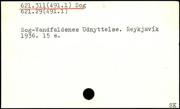 ærrzgrøTTTT— Sog-Vandfaldenes Udnyttelse. Reykjavik 1936.