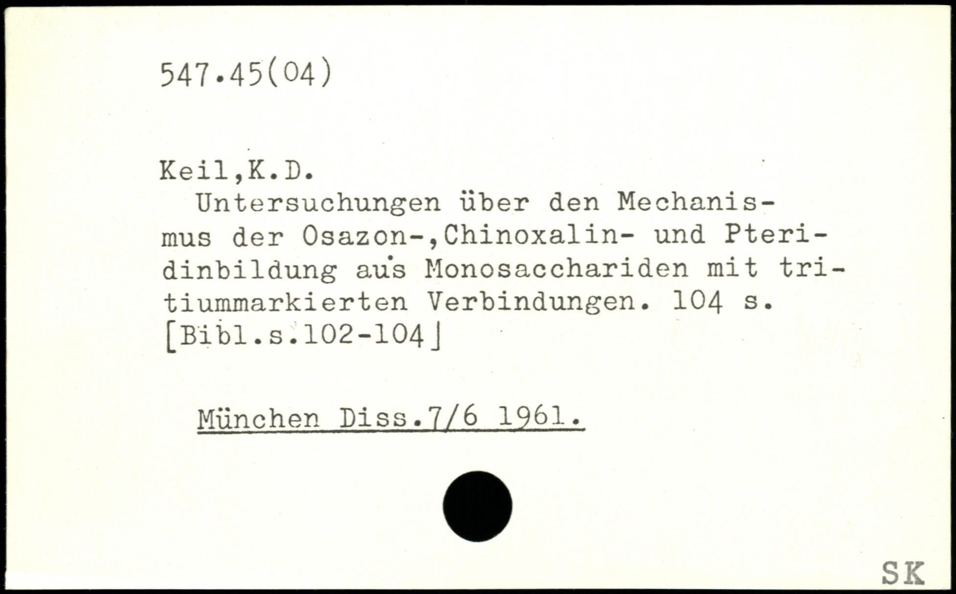 Untersuchungen über den Mechanismus der Osazon-,Chinoxalin- und Pteridinbildung aus Monosacchariden mit tritiummarkierten Verbindungen.