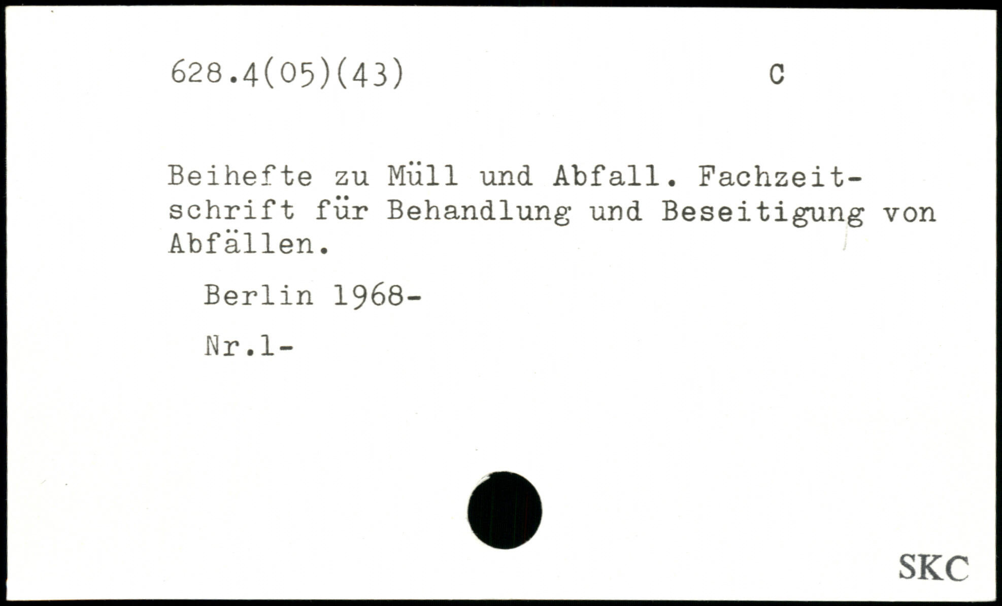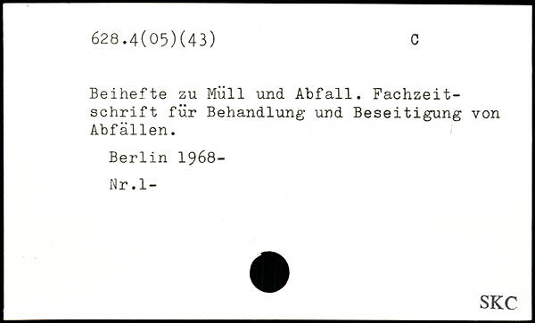 Beihefte zu Müll und Abfall. Fachzeitschrift für Behandlung und Beseitigung von Abfällen.