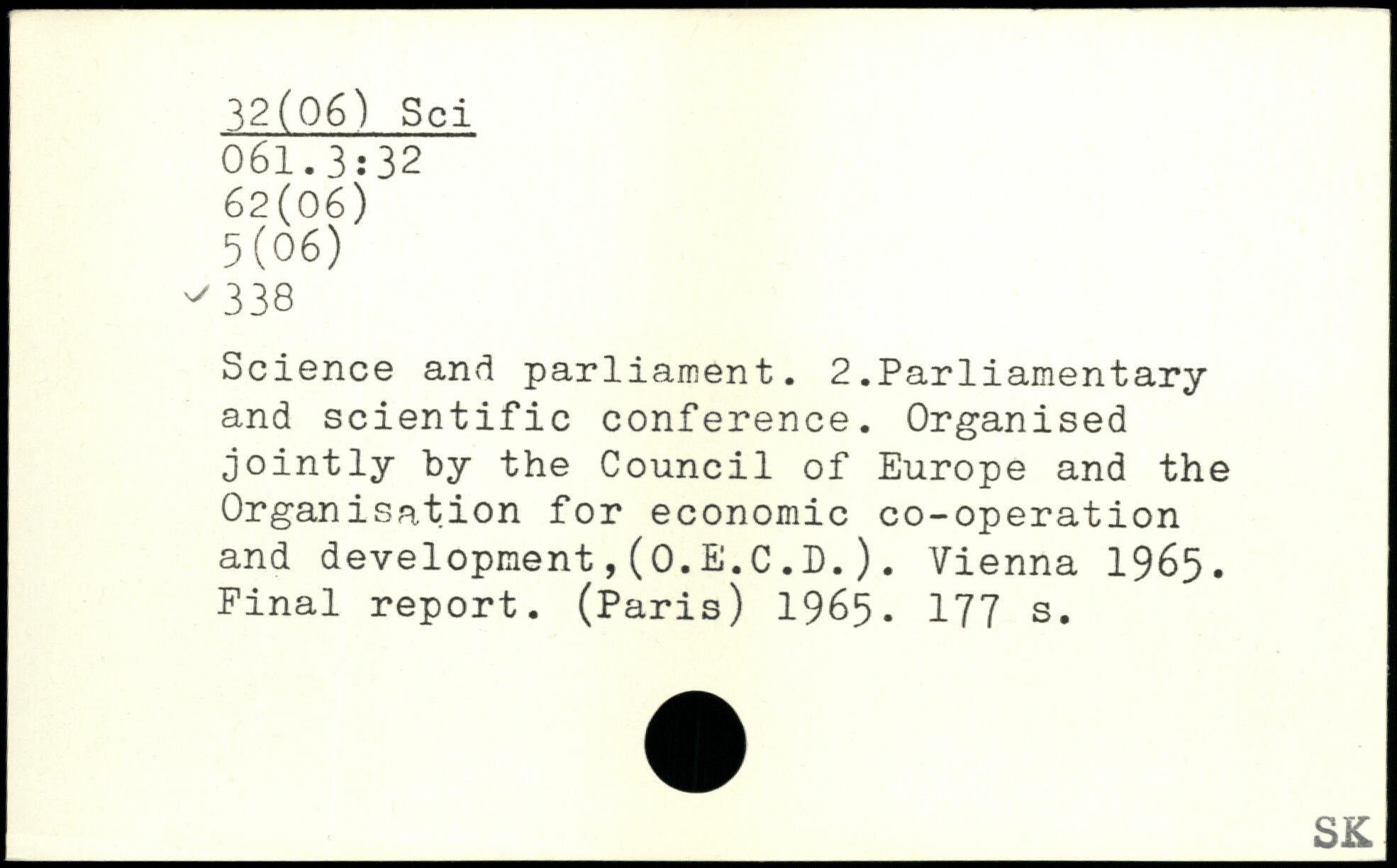Science and parliament. 2.Parliamentary and scientific conference. Organised jointly by the Council of Europe and the Organisation for economic co-operation and development,(0.E.C.D.). Vienna 1965. Final report. (Paris) 1965.