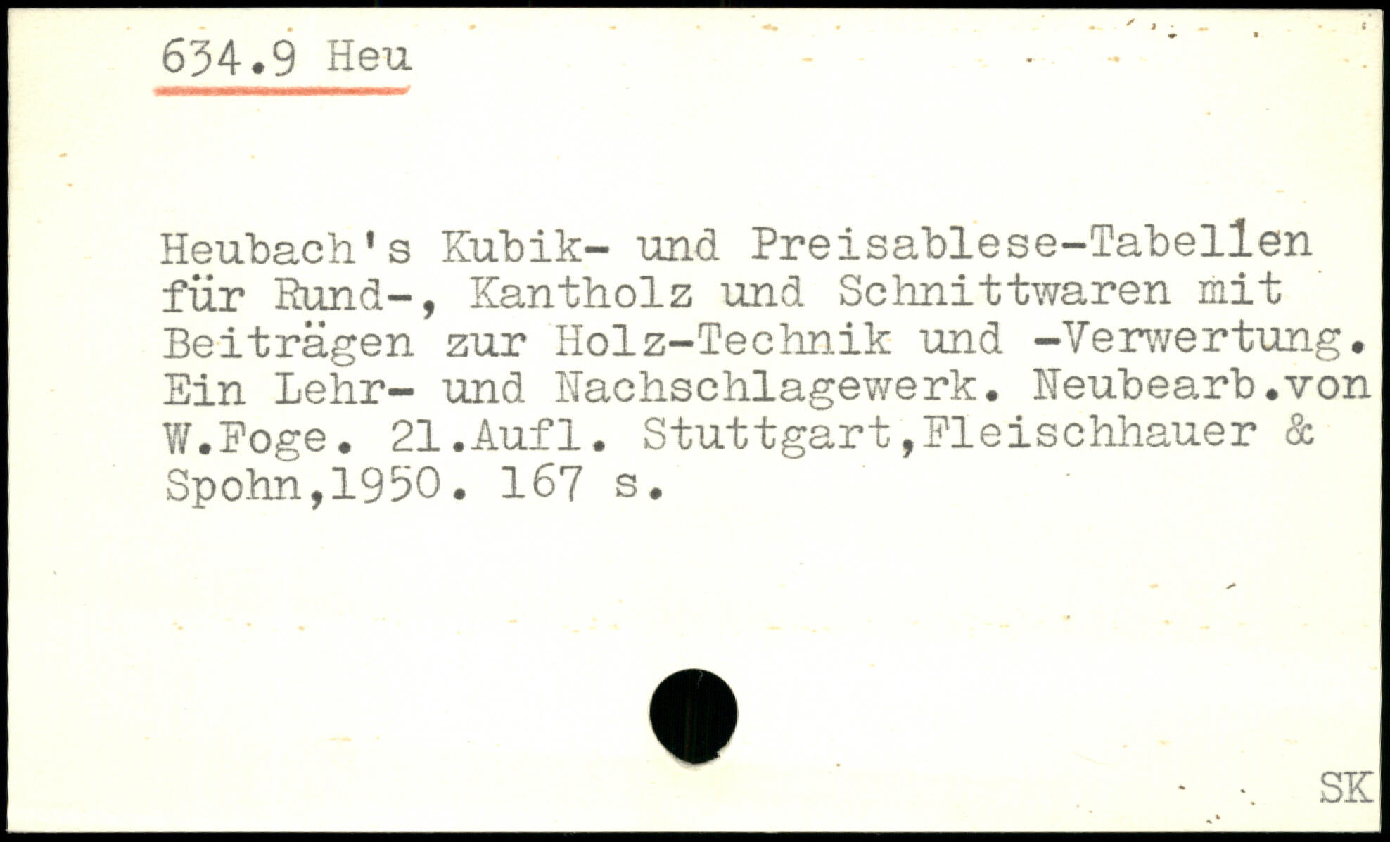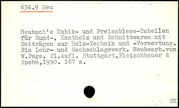 Heubach’s Kubik- und Preisablese-Tabellen für Rund-, Kantholz und Schnittwaren mit Beiträgen zur Holz-Technik und -Verwertung. Ein Lehr- und Nachschlagewerk. Neubearb.von W.Poge.