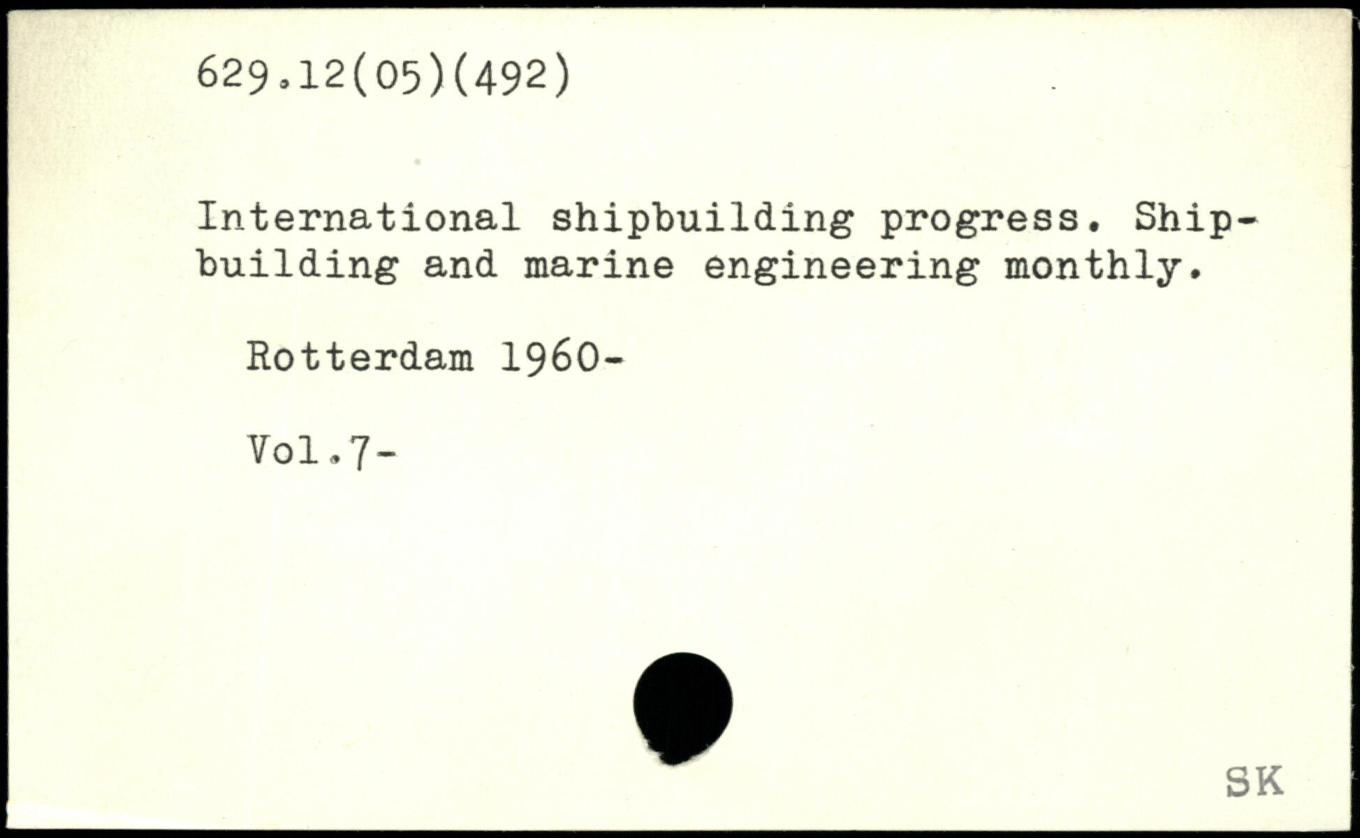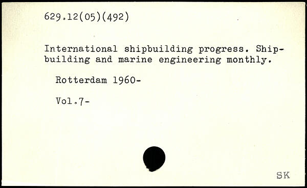 International shipbuilding progress. Shipbuilding and marine engineering monthly. Rotterdam 1960-