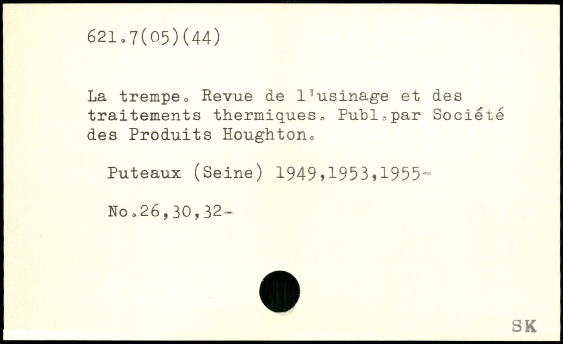 La trempe, Revue de l’usinage et des traitements thermiques, Puhl,par Société des Produits Houghton, Puteaux (Seine) 1949>1953,1955“ No ,26,30,32-