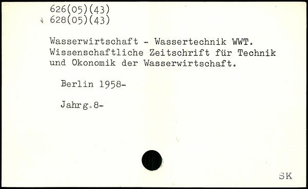 Wasserwirtschaft - Vassertechnik WT. Wissenschaftliche Zeitschrift für Technik und Ökonomik der Wasserwirtschaft.