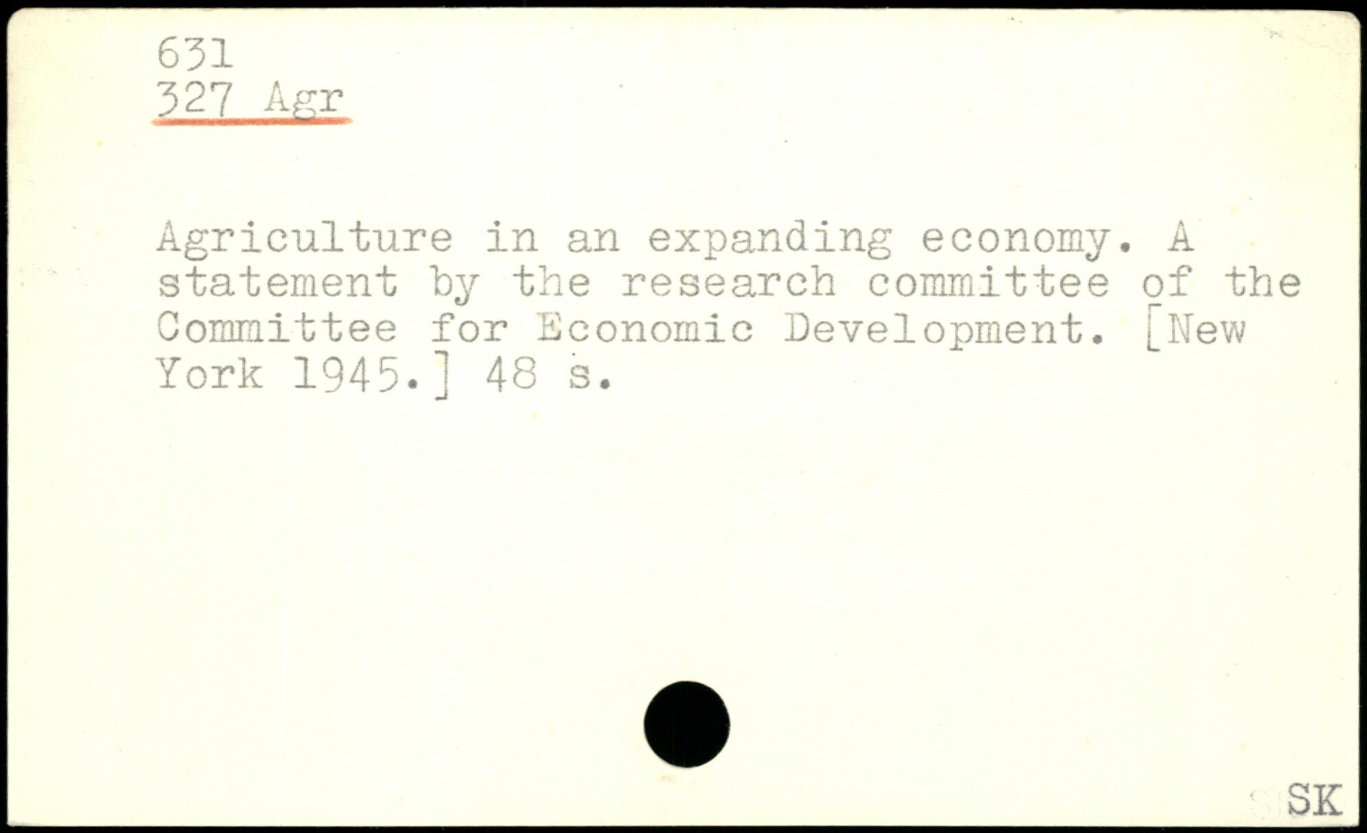 Agriculture in an expanding economy. A statement by the research committee of the Committee for Economic Development.