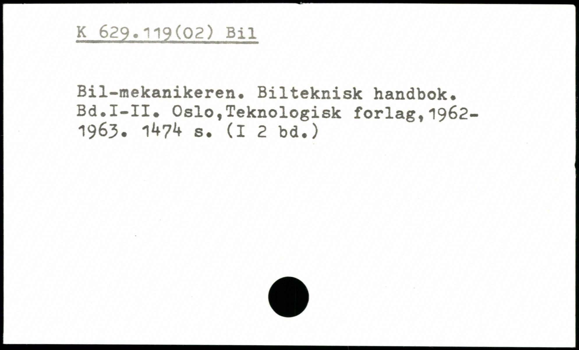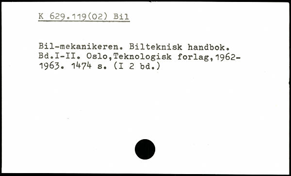 Bil-mekanikeren. Bilteknisk handbok. Bd.I-II.