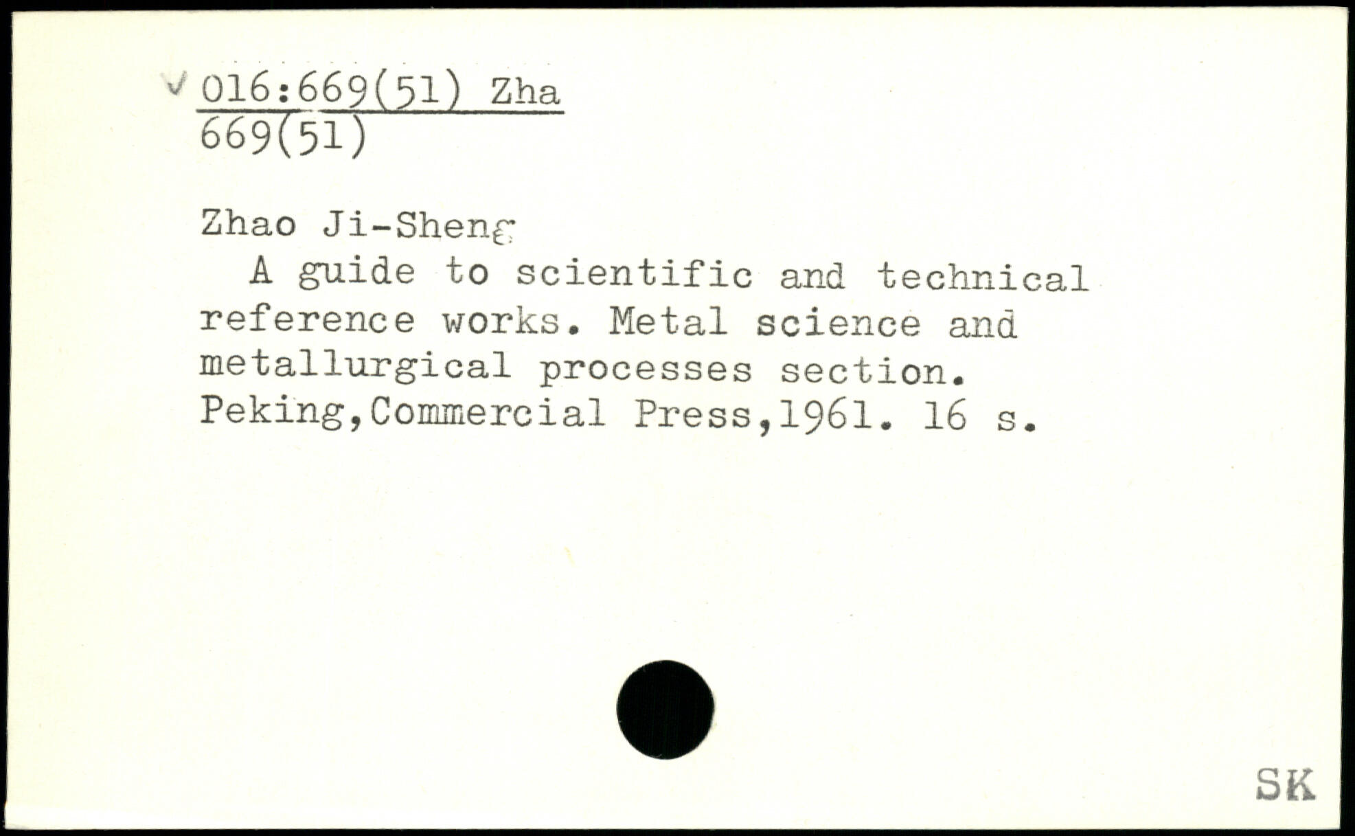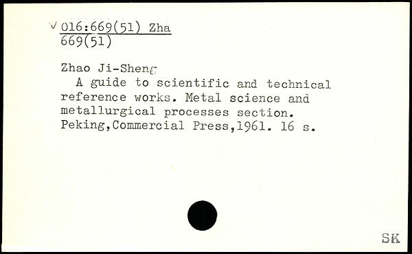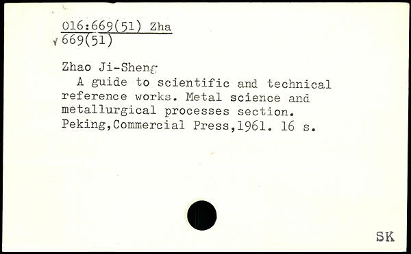 Zhao Ji-Sheng A guide to scientific and technical reference works. Metal science and metallurgical processes section.