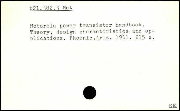 Motorola power transistor handbook. Theory, design characteristics and applications. Phoenic,Ariz. 1961.