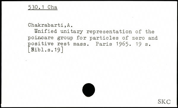 Unified unitary representation of the poijocare group for particles of zero and positive rest mass.