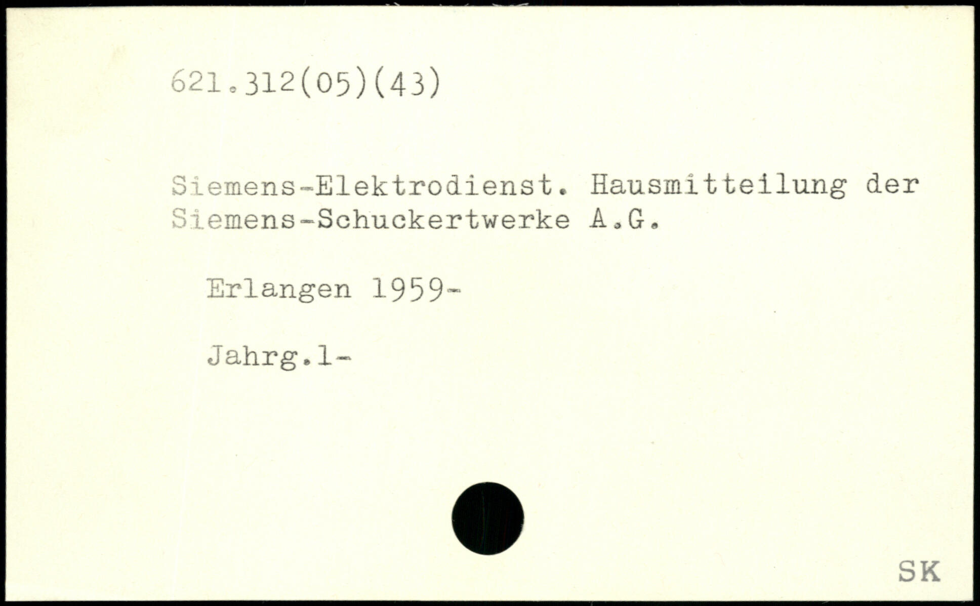 Siemens-Elektrodienst. Hausmitteilung der Siemens-Schuckertwerke A,G. Erlangen 1959~ Jahrg.1-