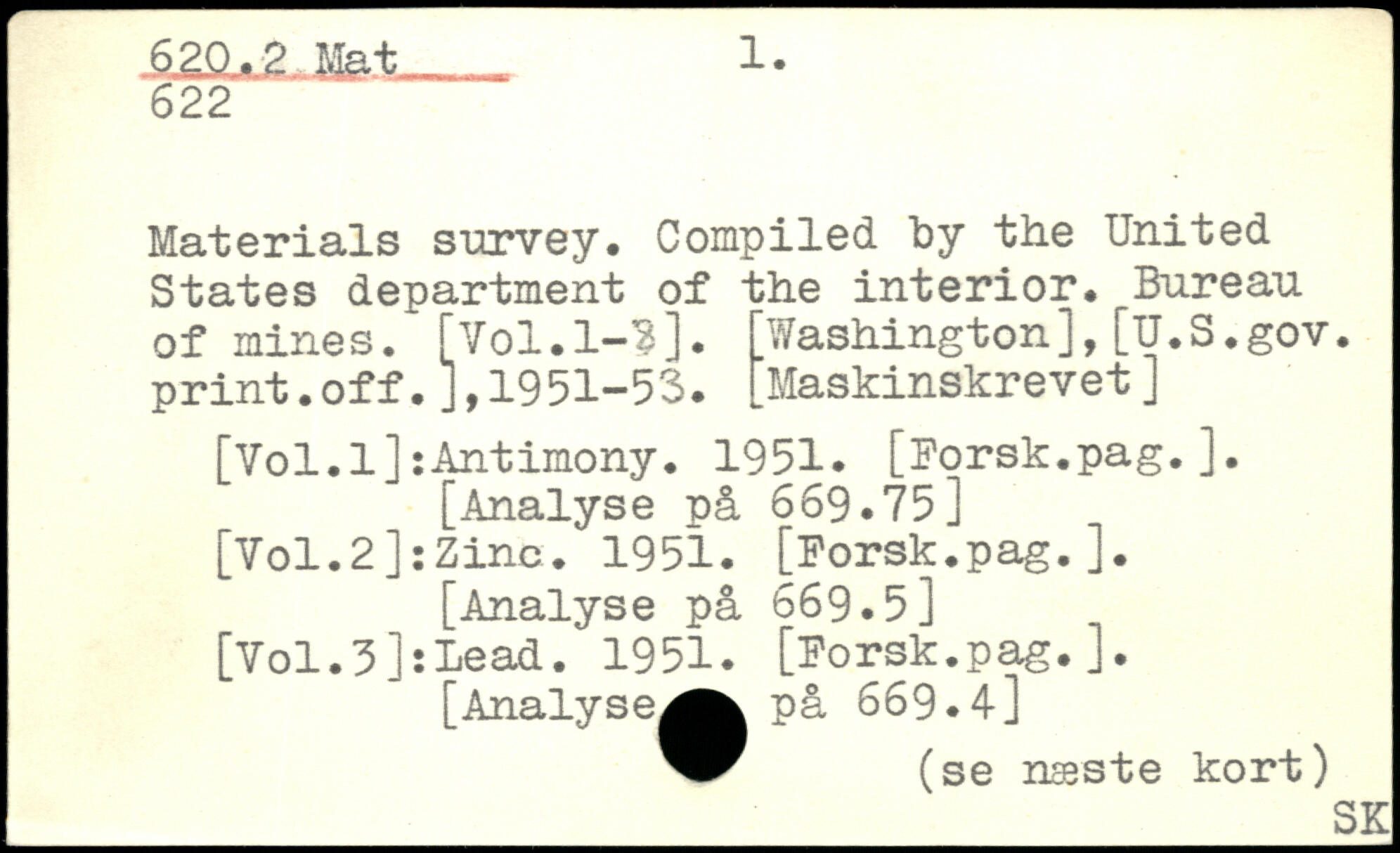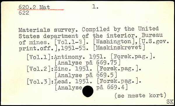Materials survey. Compiled "by the United States department of the interior. Bureau of mines. [