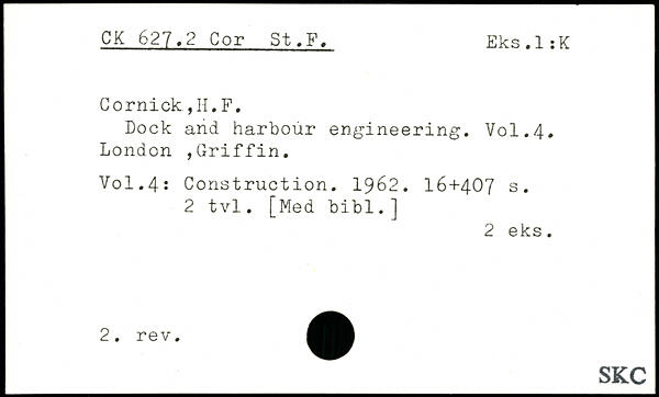 Dock and harbour engineering. V0I.4. London ,Griffin. V0I.4: Construction. 1962. I6+4O