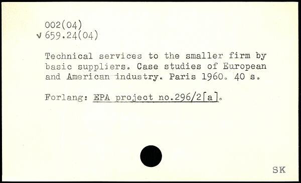 Technical services to the smaller firm by basic suppliers. Case studies of European and American Industry.
