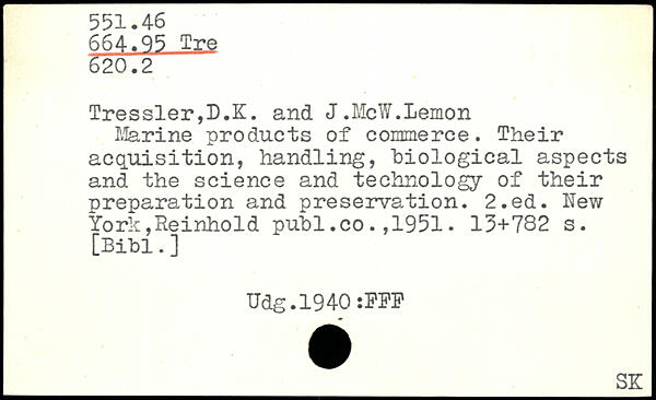 Marine products of connnerce. Their acquisition, handling, biological aspects and the science and technology of their preparation and preservation.