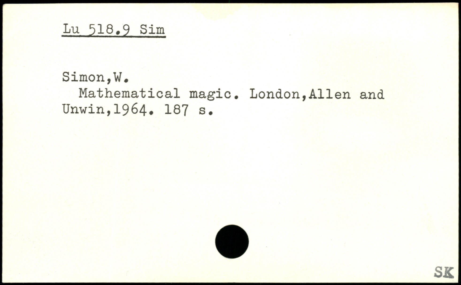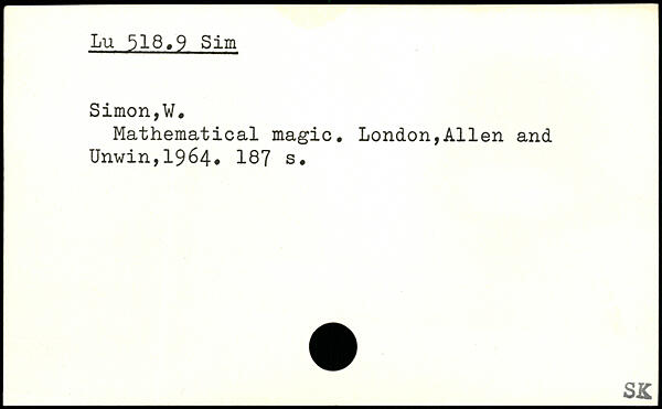 Mathematical magic, London,Allen and Unwin,1964, 187 s. _S£