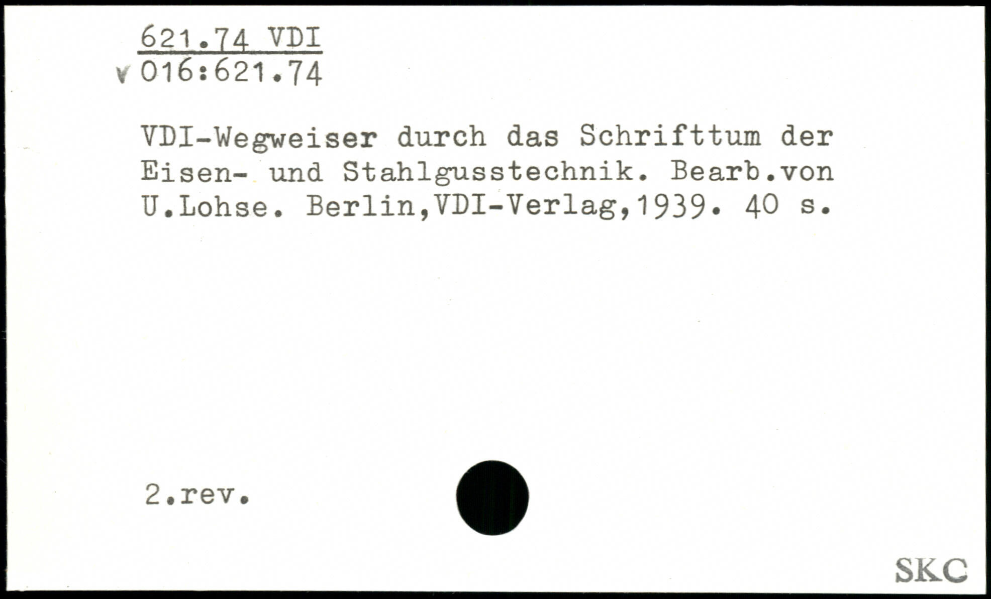 VDI-Wegweiser durch das Schrifttum der Eisen- und Stahlgusstechnik. Bearb.von U.Lohse.