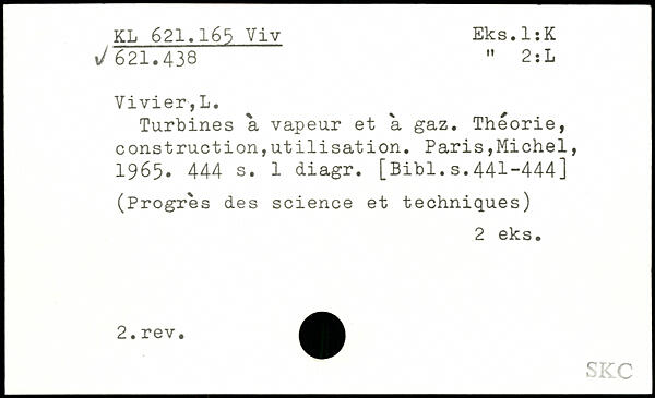 Turbines a vapeur et a gaz. Théorie, construction,utilisâtion.