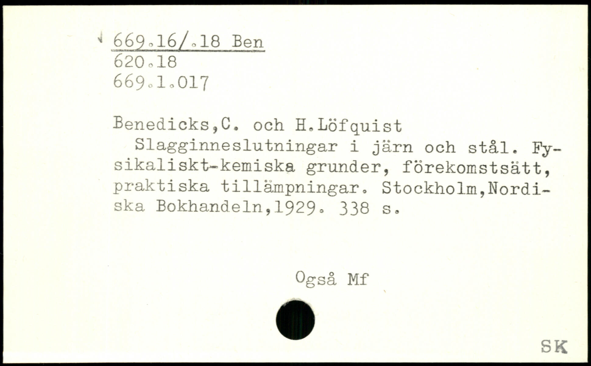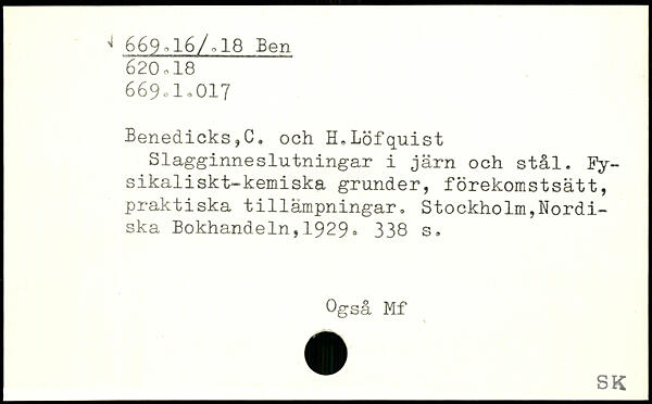 Slagginneslutningar i järn och stål. Fy-sikaliskt-kemiska grunder, förekomstsätt, praktiska tillämpningar.