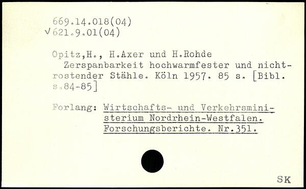 Opitz,He, H.Axer und H.Roh.de Zerspanbarkeit hochwarmfester und nichtrostender Stähle.