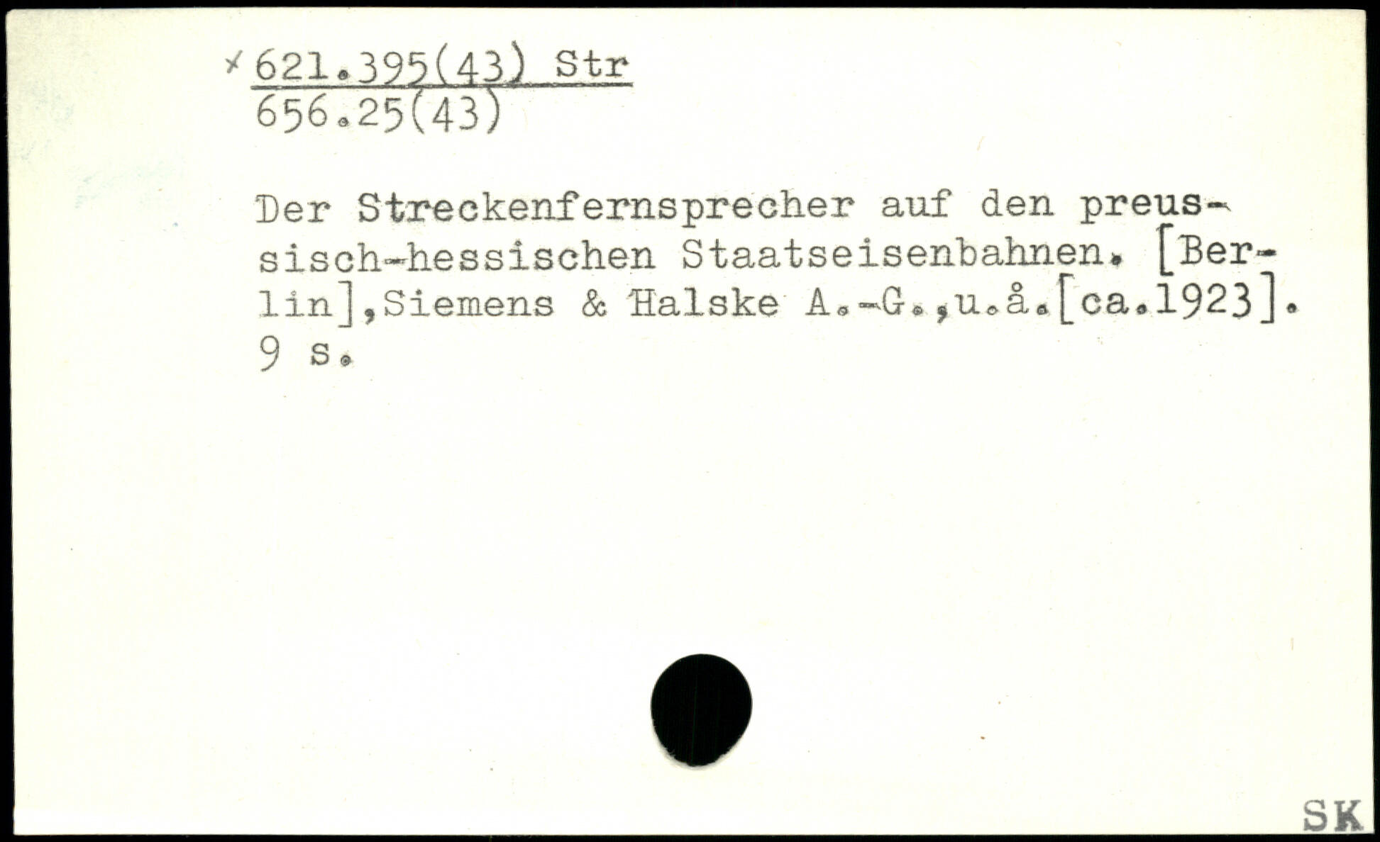Der Streckenfernsprecher auf den preus-sisoh-hessischen Staatseisenbahnen. [Berlin],Siemens & Halske A.-G.,u0äB[ca,1923].