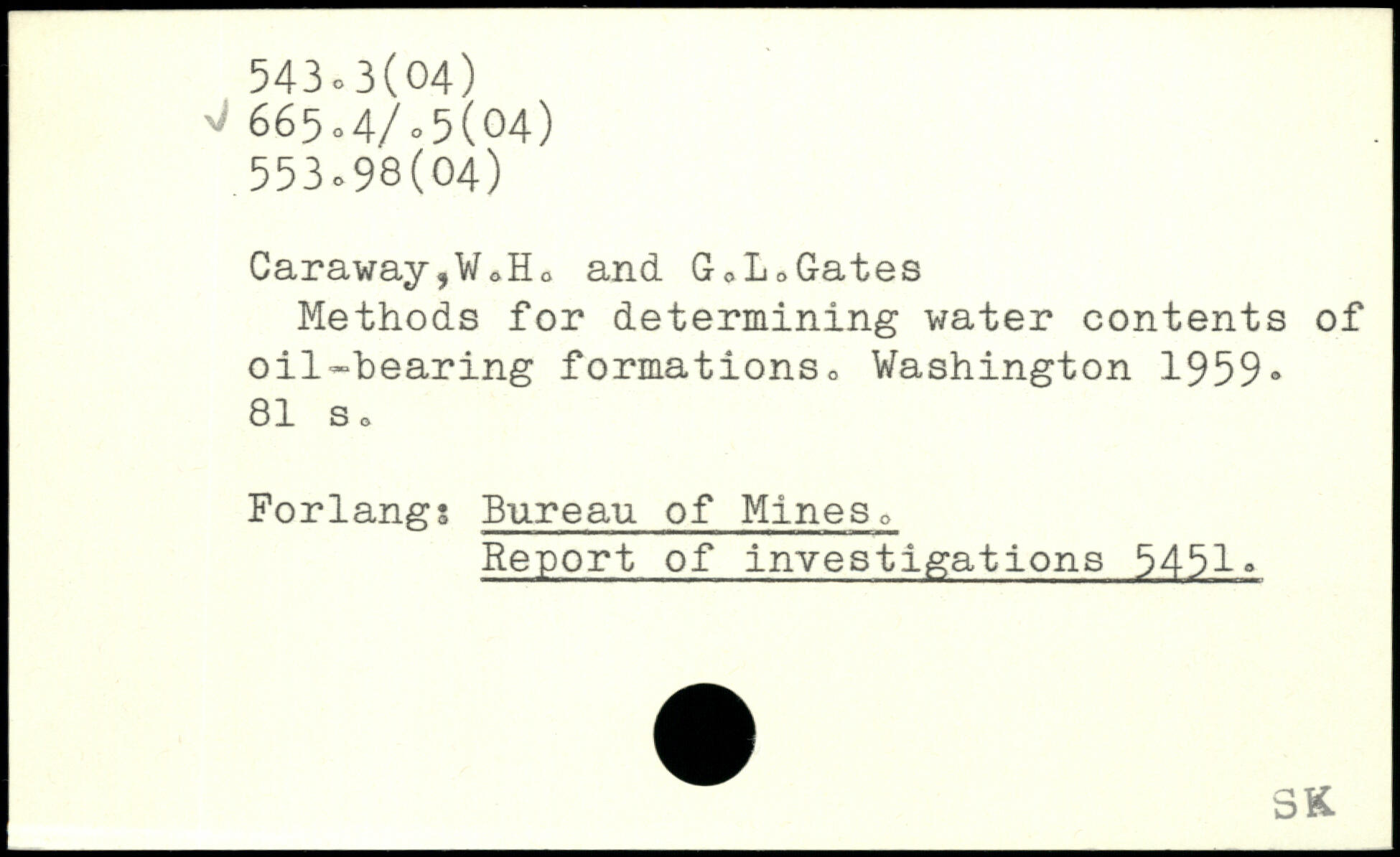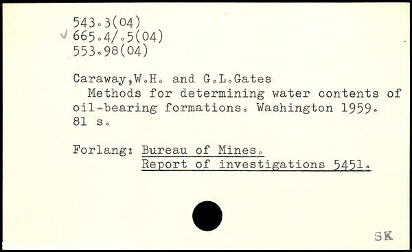 Caraway,WoH, and GoLoGates Methods for determining water contents of oil-bearing formations