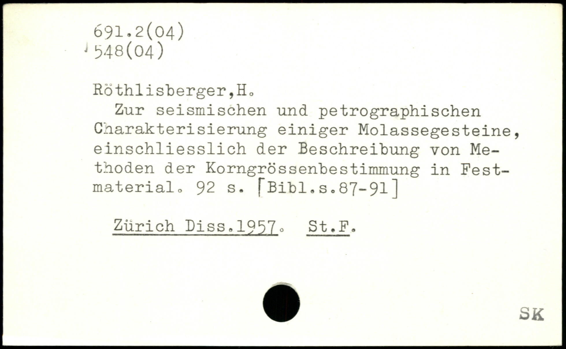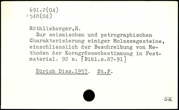 Zur seismischen und petrographischen Charakterisierung einiger Molassegesteine, einschliesslich der Beschreibung von Methoden der KorngrössenbeStimmung in Fest-material