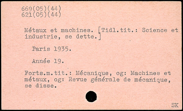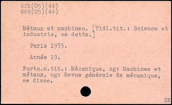 Métaux et machines. [Tidl.tit.: Science et industrie, se dette.]